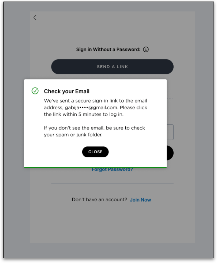 - You’ll see a message to check your email, along with a short timer before you can request another link.